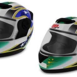 Novo design com grafismos em transfer mais agressivo e moderno, possui viseira de dupla curvatura em policarbonato com 2 mm de espessura, fechamento de engate rápido, entradas de ar frontais, isopor Interno com aletas para absorção e dissipação de choque, mais resistente e seguro e novo aerofólio em material transparente e nova forração
