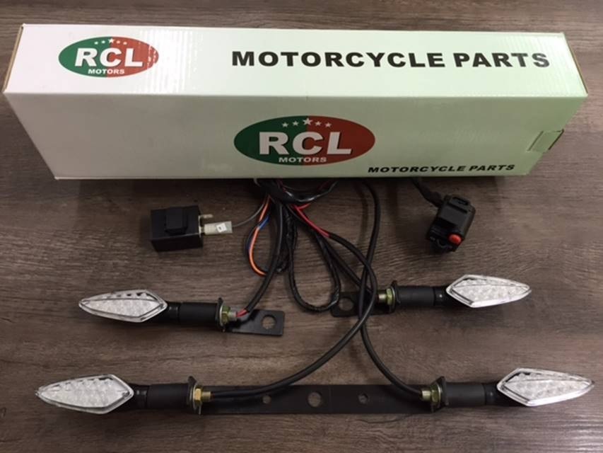 PISCAS LED, SUPORTES, CHICOTES, RELE, CHAVE DE SETA, E BOTÃO DE BUZINA